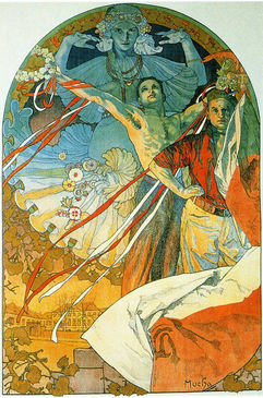 アール・ヌーヴォーを代表する画家で、多くのポスター、装飾パネル、カレンダー等を